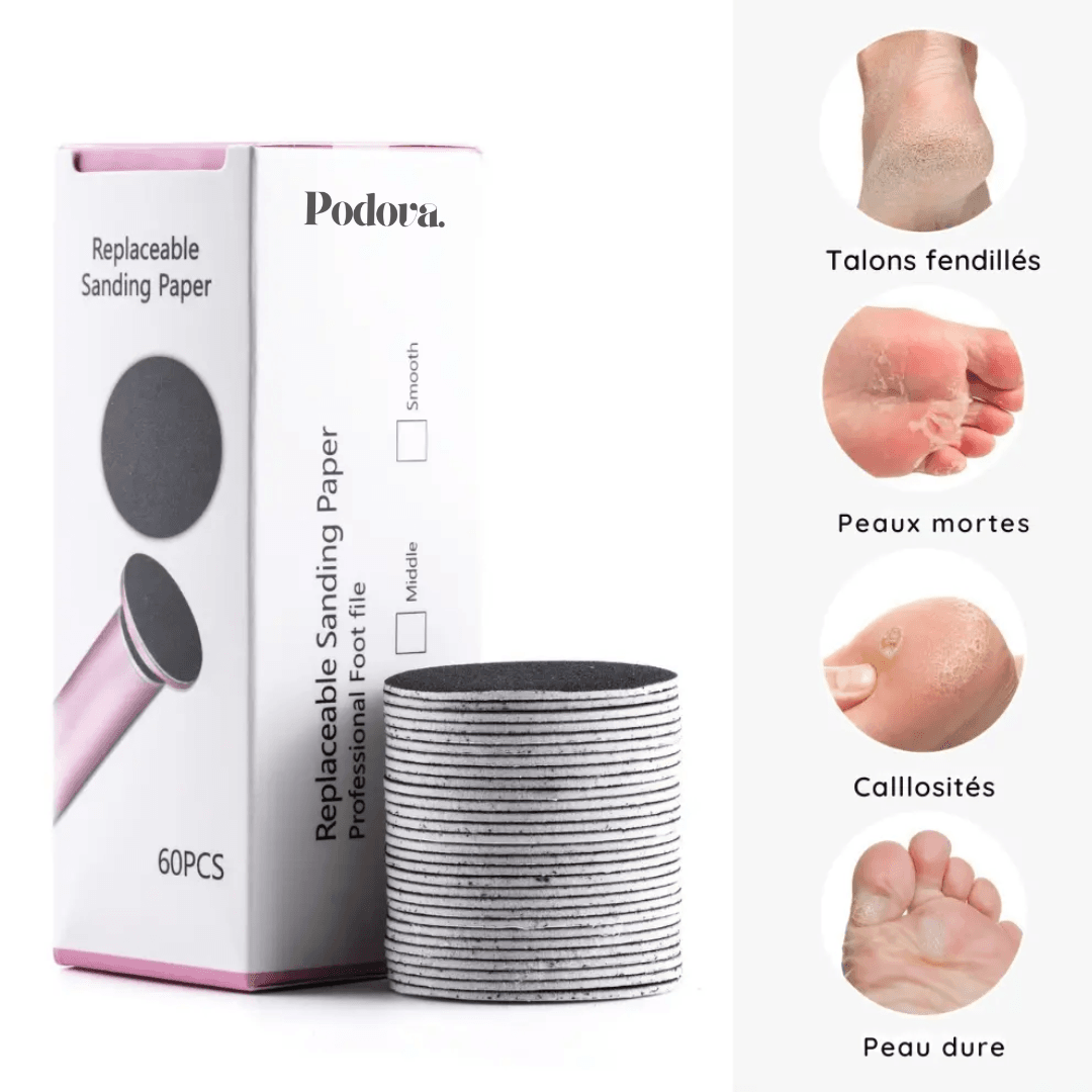 Oui. Chaque Podova est livrée avec 60 disques de rechange (grains fins et grains forts), pour une utilisation longue durée et adaptée à toutes les zones du pied.